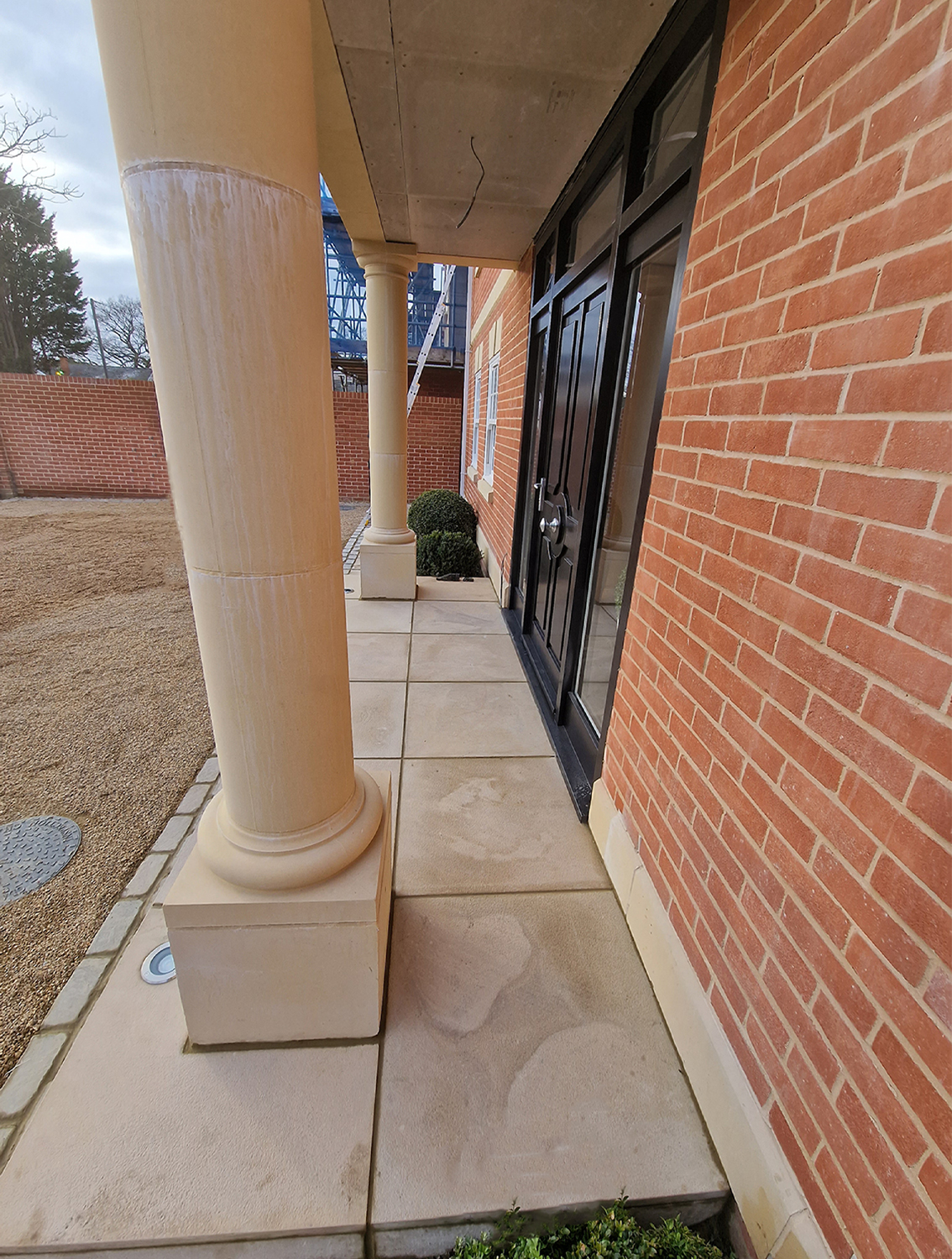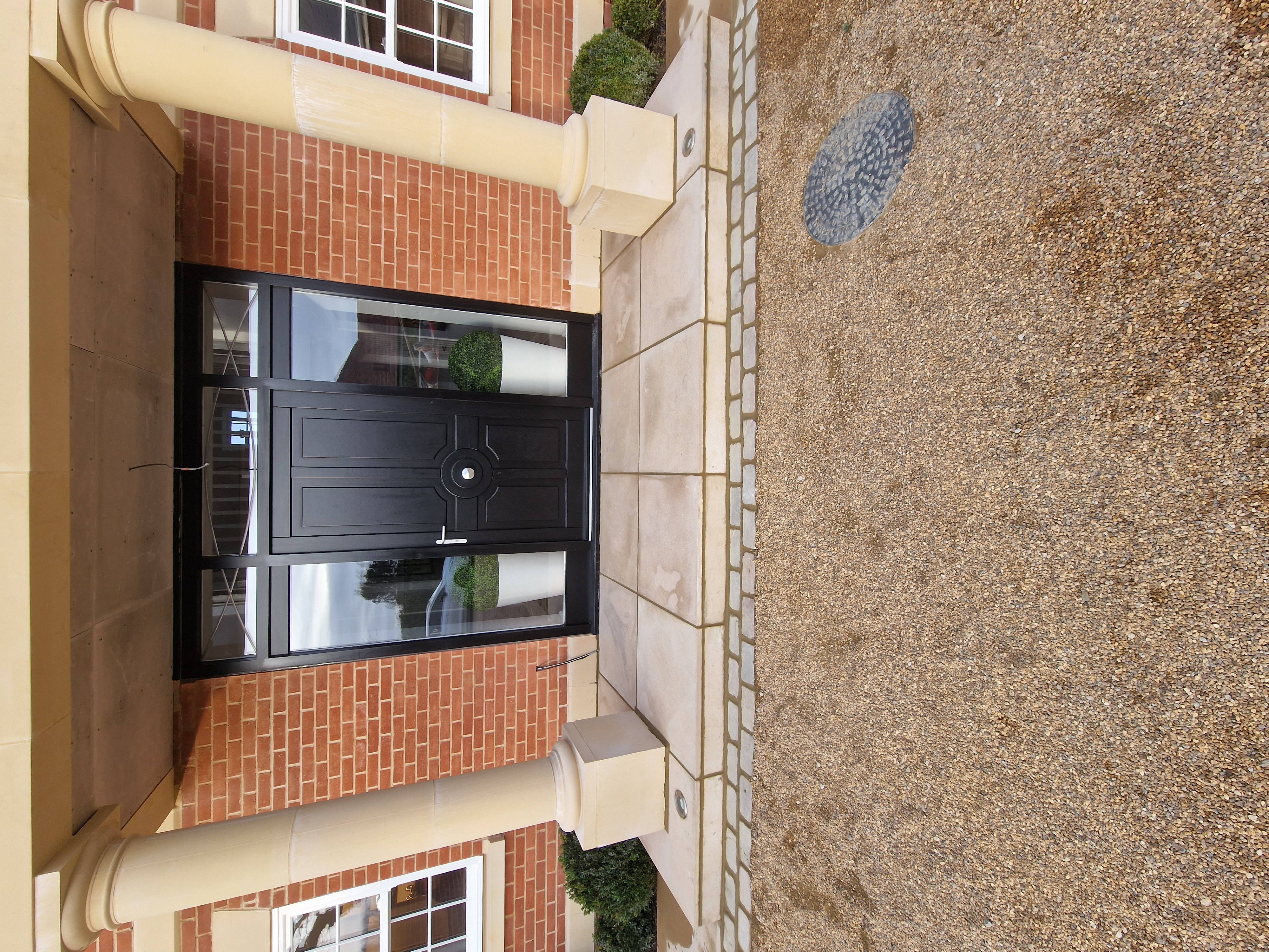 Install of a large step, using 600x600mm cast slabs to match the existing patio.